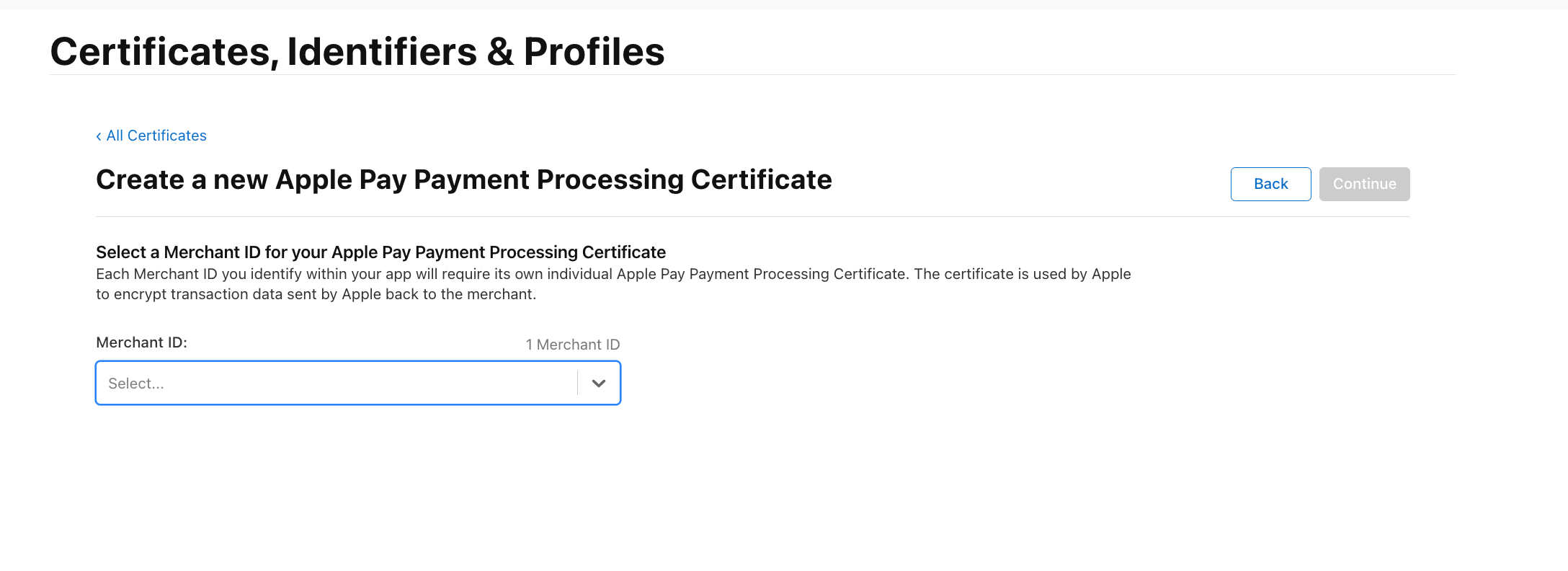 developer.apple.com, clickCertificatesand clickIdentifiers.Click the relevant bundle identifier, for the project where Apple Pay will be installed.